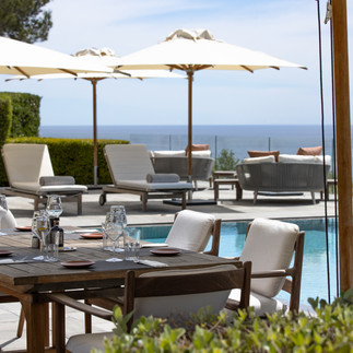 Much of its charm and character is derived from recognising that its natural surroundings are the star of the show. The recently redesigned decor is exceptionally chic, white, as with much of the South of France is the dominant colour, subtly accented with ceramics and earth toned hues and complimented by artwork reflecting the golden age of the Cote D'Azur, think Pampelonne Beach and Bridget Bardot. Expansive use of floor to ceiling glass windows allows the natural environment to surround you with the endless sea views and the gentle sound of cicadas.